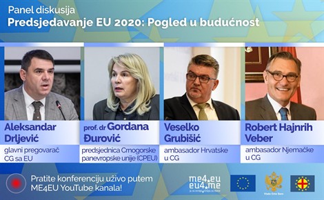 Generalni sekretarijat Vlade, u saradnji sa Crnogorskom panevropskom unijom organizuje panel debatu: „Predsjedavanje EU 2020: pogled u budućnost“. Skup se organizuje povodom osme godišnjice pristupnih pregovora, kao i završetka predsjedavanja Hrvatske Savjetom Evropske unije i preuzimanja Predsjedništva od strane Njemačke.